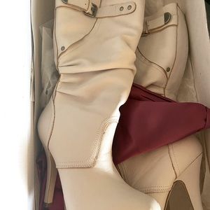 Shi- White/Ivory/Cream Journey’s heeled boots. Great with a cute sweater dress!