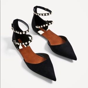 Pearled Straps Pointed Suede Flat!