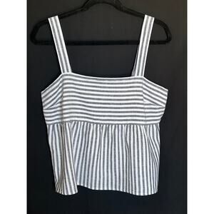 Madewell Striped Blouse, maroon/black, Small, Cap Sleeve, Button Down, High Low