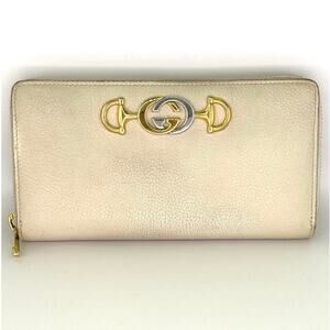 Gucci GG Two Tone Hardware Cream Leather Zip Around Wallet