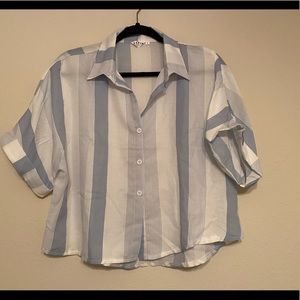 lightweight striped button down crop