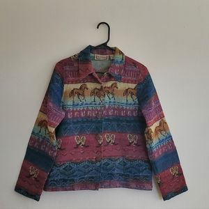 colorful western horse button up jacket medium