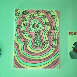 mushroom painting - hand painted and drawn on canvas