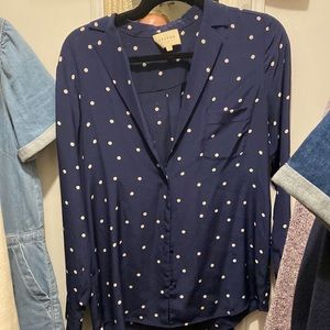 Sezane navy silk polka dot ann shirt