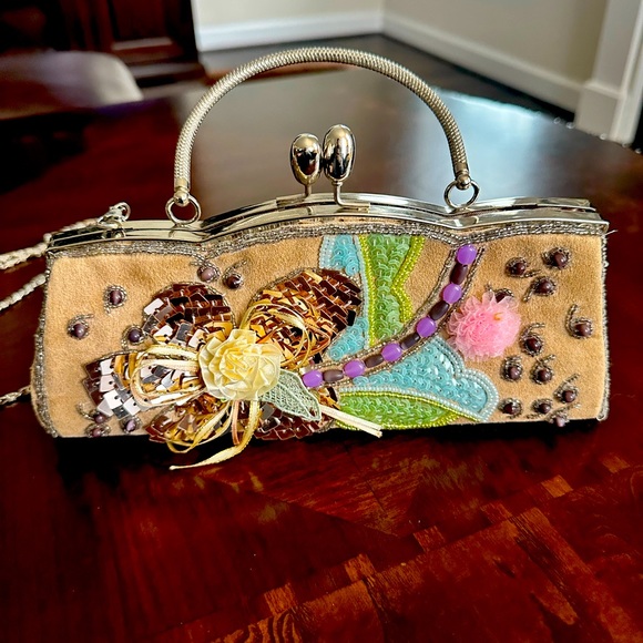 This petite bag is a beauty! I'm into collecting pretty, colorful, unique vintage bags and Mary Francis beaded bags. This little gem had an amazingly good price. It looks in perfect condition, and has loads of pastel colors and beaded and ribbon textures. Seller included a thank you card, and 2 fun stickers! Very good experience!