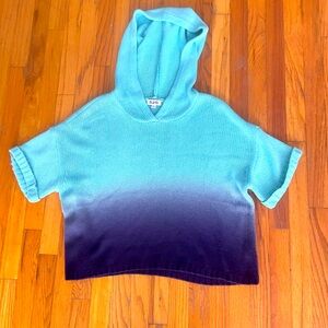 aqua blue ombre cotton hoodie sweater with short sleeves size Medium