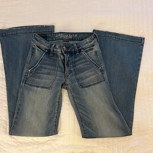 American Eagle Boho Artist distressed flares