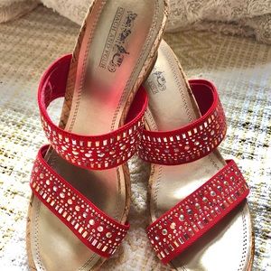 Coach and Four Wedge Sandals Red & Gold Size 9
