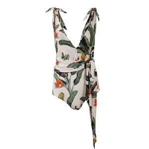 PatBo Off-White Tropical Print Plunge Swimsuit