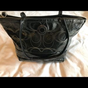 Coach Black Patent Leather Purse Tote G1293-F12198