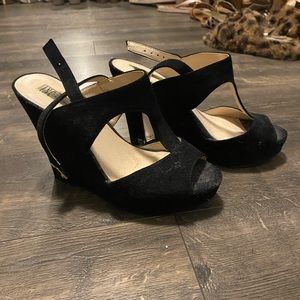 INC black suede wedge sandal. Never worn perfect condition