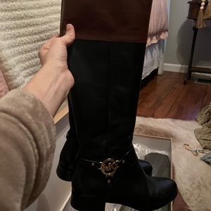 Michael Kors Stockard Two-Tone Leather Riding Boot, Size 7.5