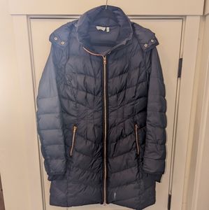 Athleta Goose Down Parka, Navy with Rose Gold - Size Medium