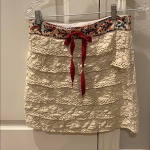 Anthropologie-Crochet and embroidered waist skirt