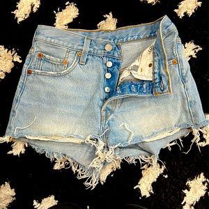 Women’s Levi’s High Waisted Light Wash Frayed Denim Shorts Size 24
