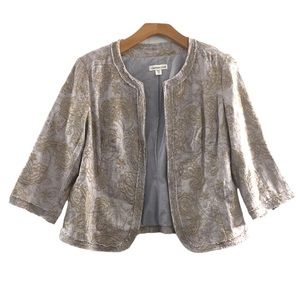 Coldwater Creek Gray Cream Paisley Embellished Jacket Womens 16 Linen 3/4 Sleeve