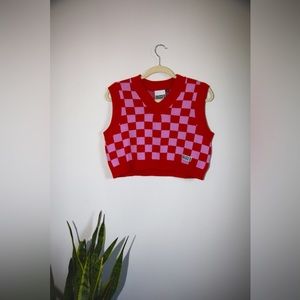 RAGGED PRIEST Pink & Red Checker Passenger Cropped Sweater Vest