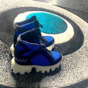 Gym shoe high top with rhinestones, black and blue.