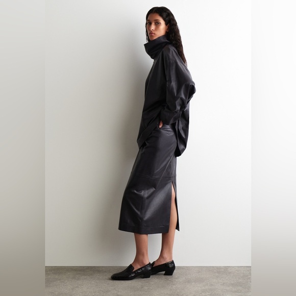 This is a gorgeous skirt made from beautifully finished leather — thin yet strong. It fits perfectly and the tailoring is excellent. I really love the brand COS. Thank you for the fast shipping and the great price. I highly recommend this seller.