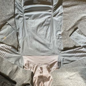 Athleta baby blue and white cinched top