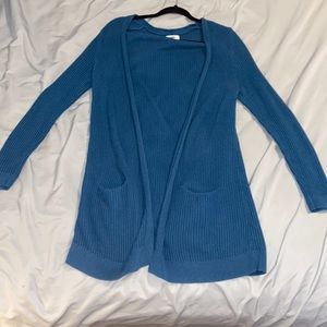 Long blue open face cardigan. Has pockets!