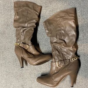 Knee high taupe just fab boots.