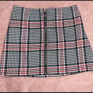 Black, White and Red Plaid Mini Skirt