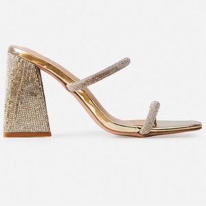 Simmi London Peruvian Gold Diamante Strappy Block Mules - NWT - Sz 9