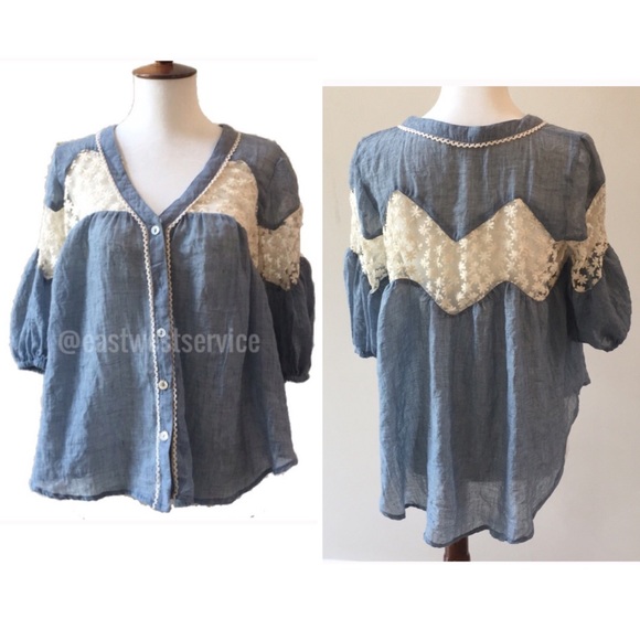 Altar'd State Tops - altar’d state chambray floral lace button up