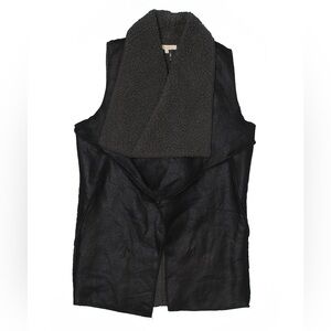 Cherish Size XS Black Faux Fur Pleather Leather Sleeveless Vest Open Front Fall