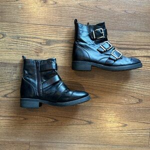 Madden Girl Black & White Snake-Print Block Heel Ankle Boots