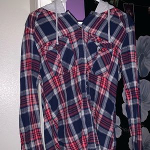 Plaid hooded button down flannel women’s size M