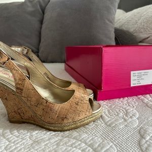 Tory Burch Gold and Tan Wedge Mules size: 6.5 price: $99