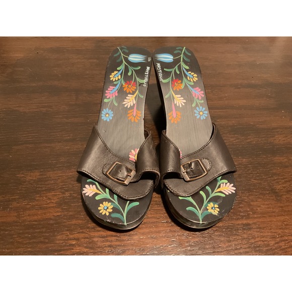 Absolutely darling! Beautifully packaged! What a deal! These bohemian, artsy clog slides from Mystique are “wearable art”! Excellent condition!!! Totally unworn!!! I cannot rave enough about!!! They fit me perfectly!