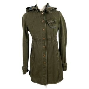 Free People Green Military Utility Jacket Hooded 2