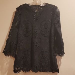Democracy Women’s Lace Embroidered Boho Blouse Size S Ivory Crochet Trim Top