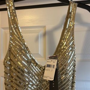 Navy Sequin Gown. Long Sleeve. XS Maxi Long, High Neck Evening Gown