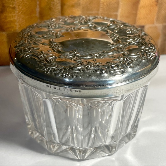 Most excellent packaging for a beautiful crystal vanity jar with sterling, mirrored lid! I dearly love this; it perfectly matches a monogrammed one which I received in 1985. Thank you for parting with this fine item, Carla, and for the lovely bag in which it was carefully wrapped.