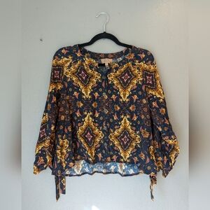 Kachel X Anthropologie Baroque Long Sleeve Button Up Blouse Blue Orange Top Sz 6