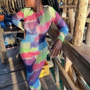 Black Mesh Sleeve Cut Out Bodycon Dress