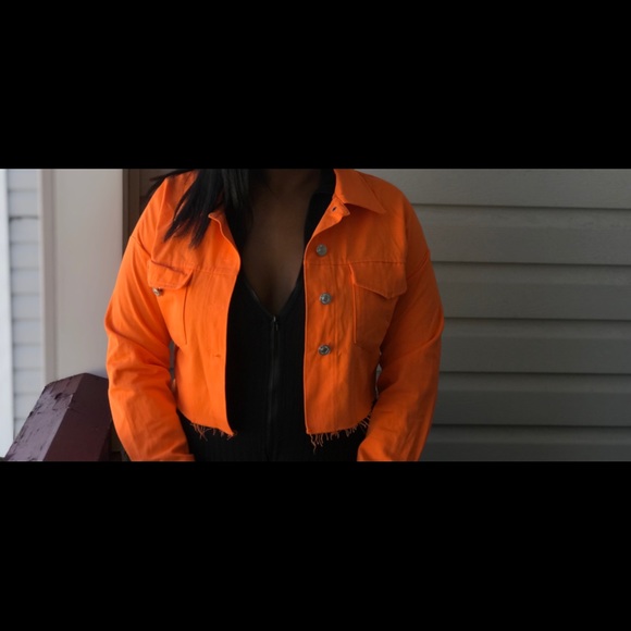 Hello, The jacket is a vibrant orange which is exactly what I wanted. Thank you for the free gifts they are amazing.