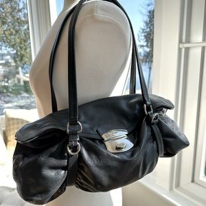 Emporio Armani black leather knee-high boots with 3” silver heel