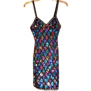 Alyce Designs Womans Sequin Diamond Pattern Vintage Cocktail Dress Size 6