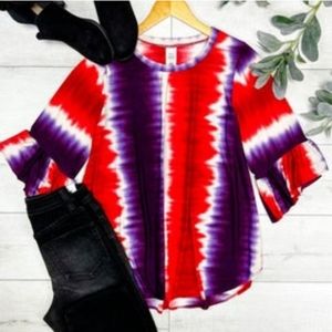 Scoop neck bell sleeve multi colored boutique top
