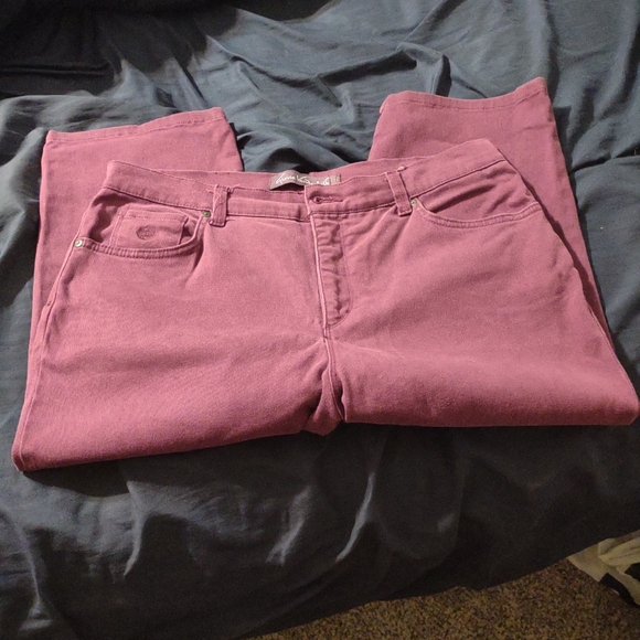 Picture shows pink pants. They are a magenta like color. I must have the description of the color bing purple. Lol