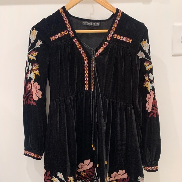 Topshop Dresses & Skirts - Topshop Velvet Embroidered Dress