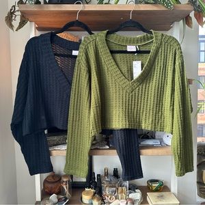 NWT uo • cropped waffle long sleeve v neck set of 2