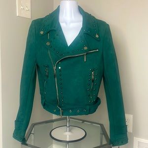 Like new! Love Token Studded Suede jacket in Emerald Green