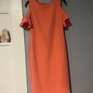 Calvin Klein orange off the shoulder dress
