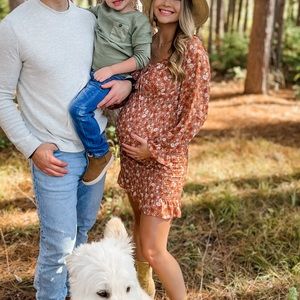 Pinkblush floral smocked dress mini long sleeve maternity size small rust